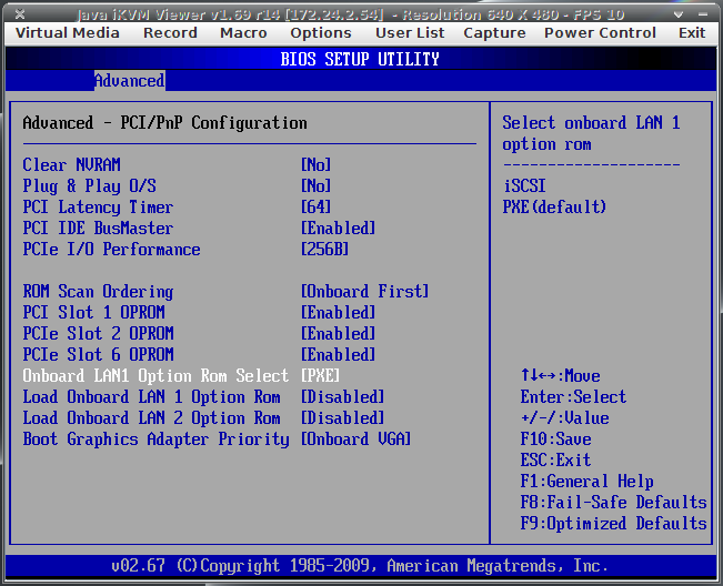 2. В підменю PCI/PnP Configuration перейдіть до пункту Onboard LAN1 Option Rom Select і встановіть для нього значення PXE.